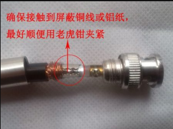 銅線芯用螺絲壓緊,鐵片要和屏蔽銅線或鋁紙接觸,要不然視頻會不清晰或不穩定,甚至黑屏。最好用老虎鉗壓緊鐵片,以防監控線脫落。另外,屏蔽線不能接觸到中間的銅線芯,要不然也會干擾到視頻。