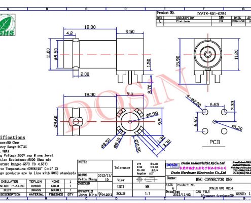 在下文中,主要會展示德索五金電子bnc連接器的圖紙信息、電器性能、機械性能、環境性能四個方面的內容,旨在幫助客戶更好了解我們的產品。購買具體的產品,可以進入產品頻道查看每一款產品的詳細參數。