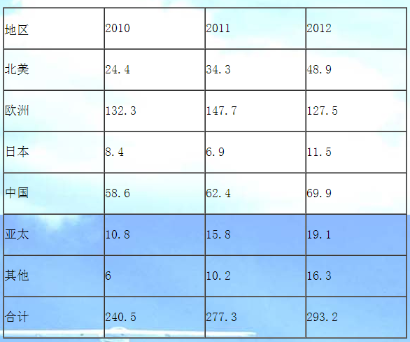 2011年風能設備連接器的出貨量是1.169億美元,比上一年增長6%. 2012年預測的出貨量是1.323億美元,比2011年增長13.2%. 美國的次貸危機,歐洲債務危機的延續等因素一直影響風能產業的發展. 業內人士對今年和明年的展望是: 2012年保持平穩增長;2013年會出現滑坡.