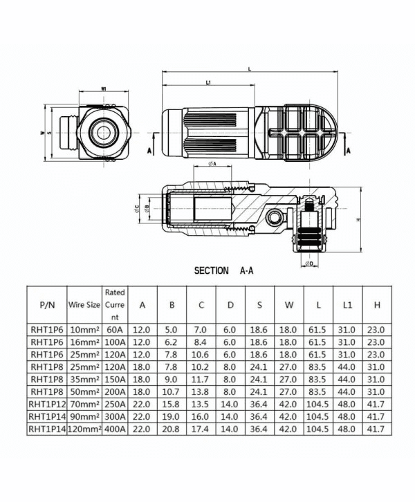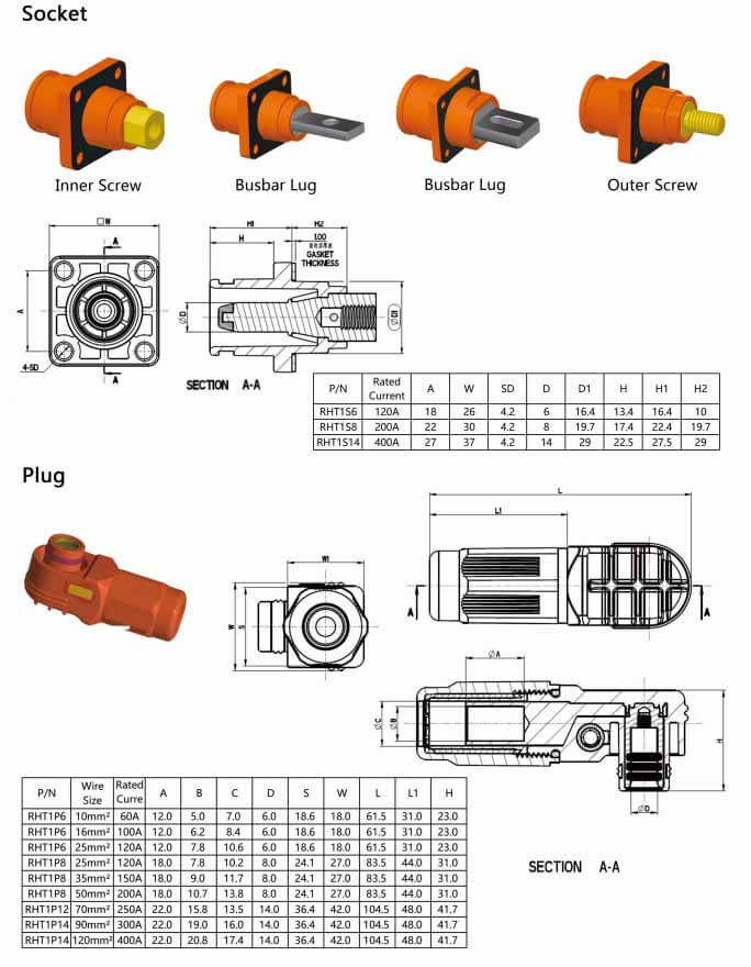 標(biāo)簽:儲(chǔ)能連接器,彎式,插頭和插座,8mm,紅色,IP65,120A,帶孔銅牌
