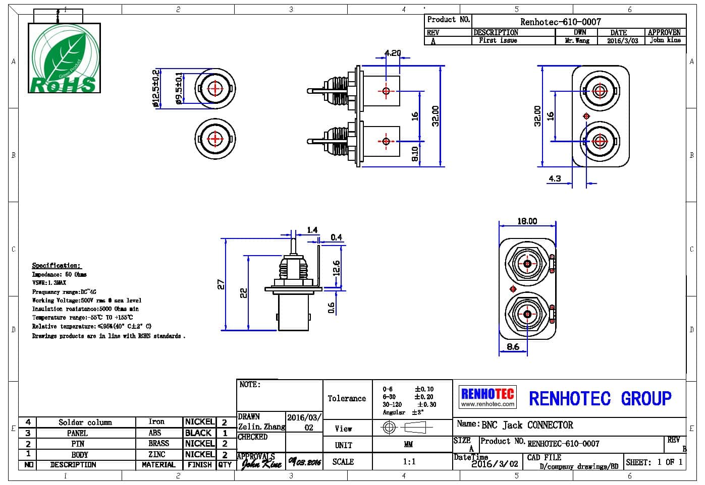 | 頻率范圍 | 50 ohm 為 0~4 GHz |