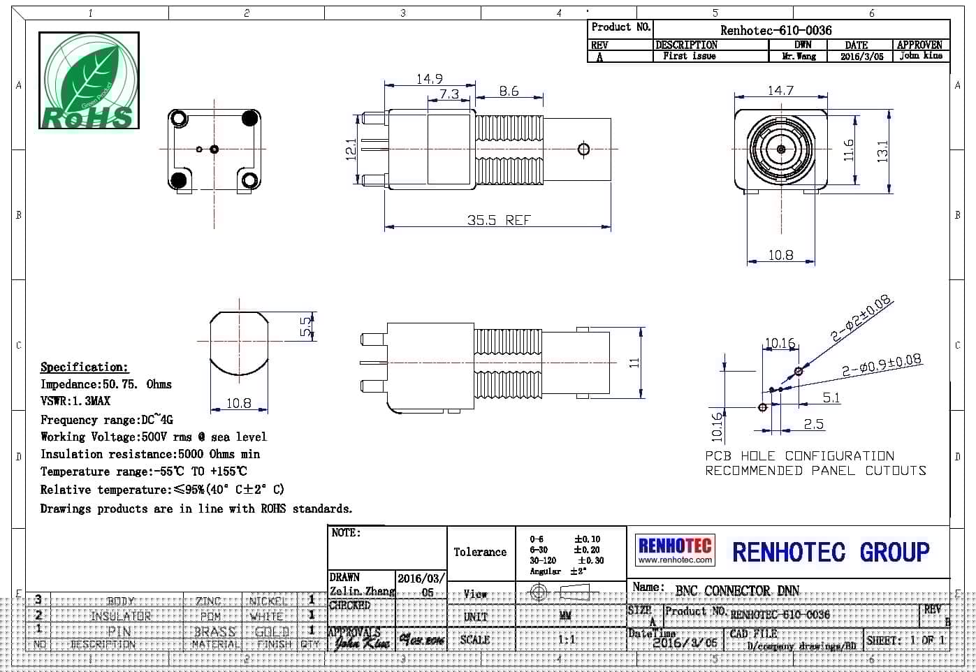 | 頻率范圍 | 50 ohm 為 0~4 GHz |