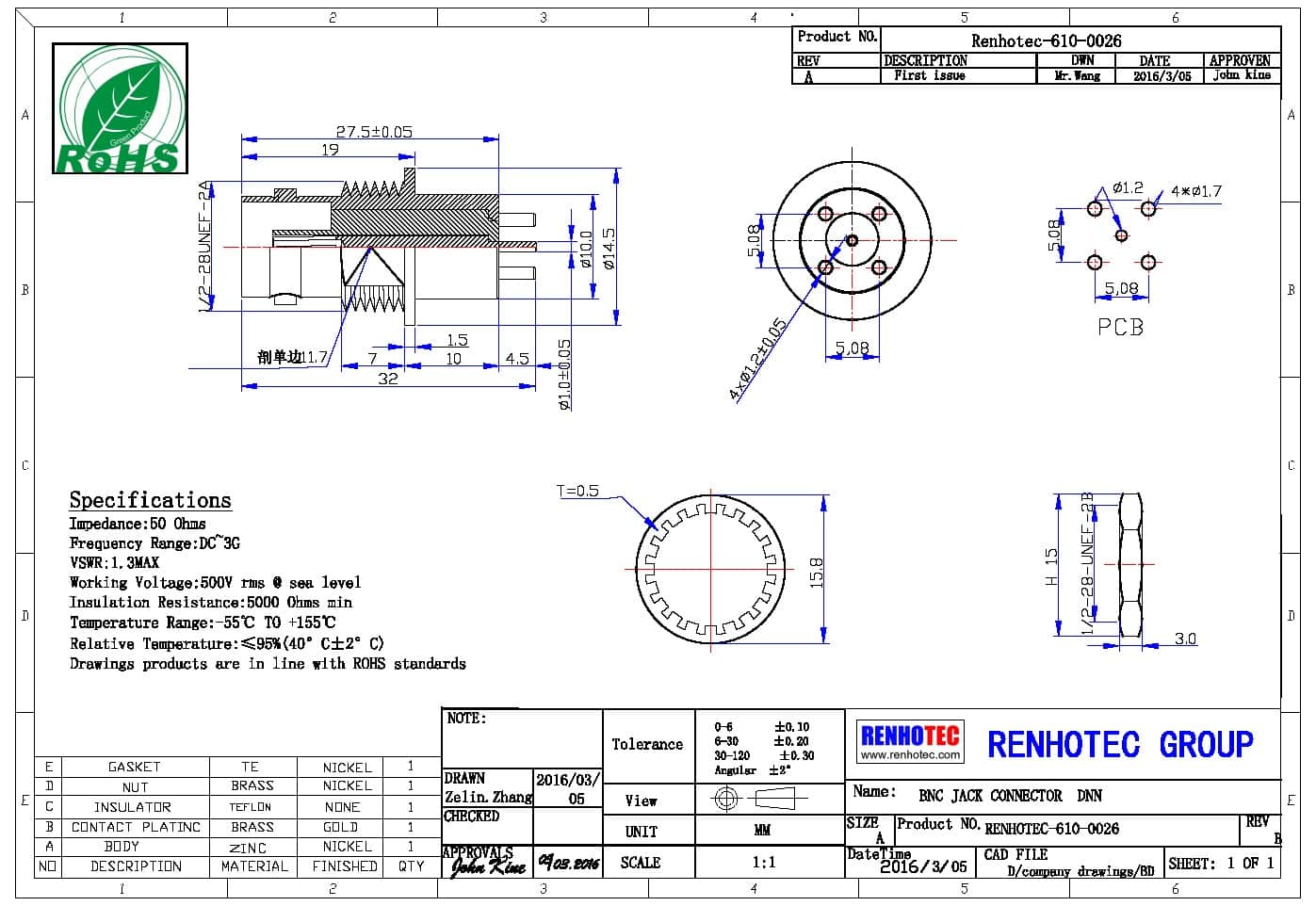 | 阻抗 | 50 ohm |