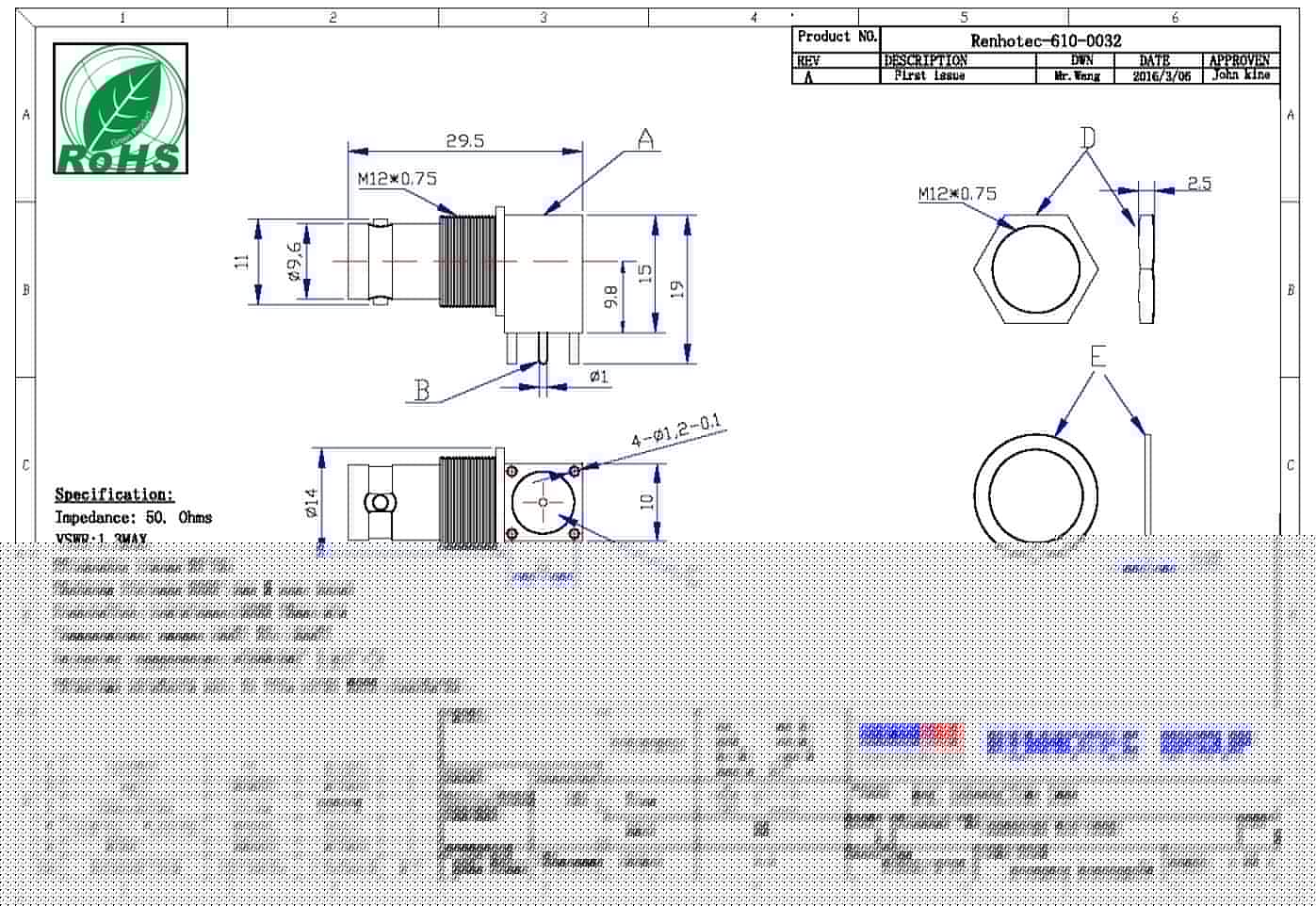 BNC方頭5引腳鋅合金彎式同軸射頻連接器PCB
