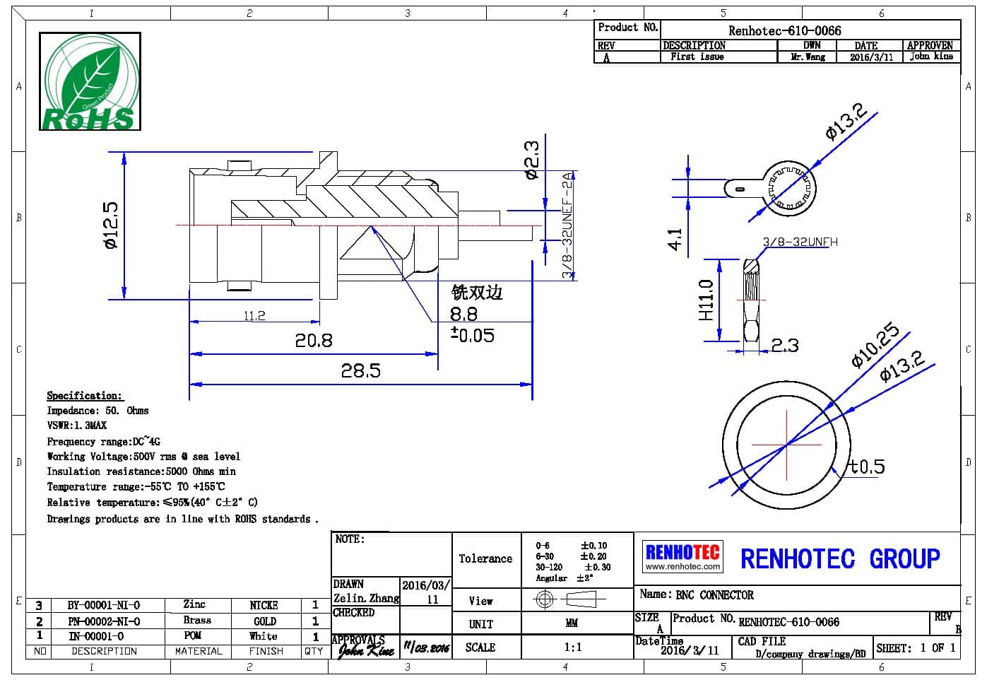 | 電壓駐波比 | 直式 ≦ 1.22/3GHz / 彎式≦ 1.30/3GHz |