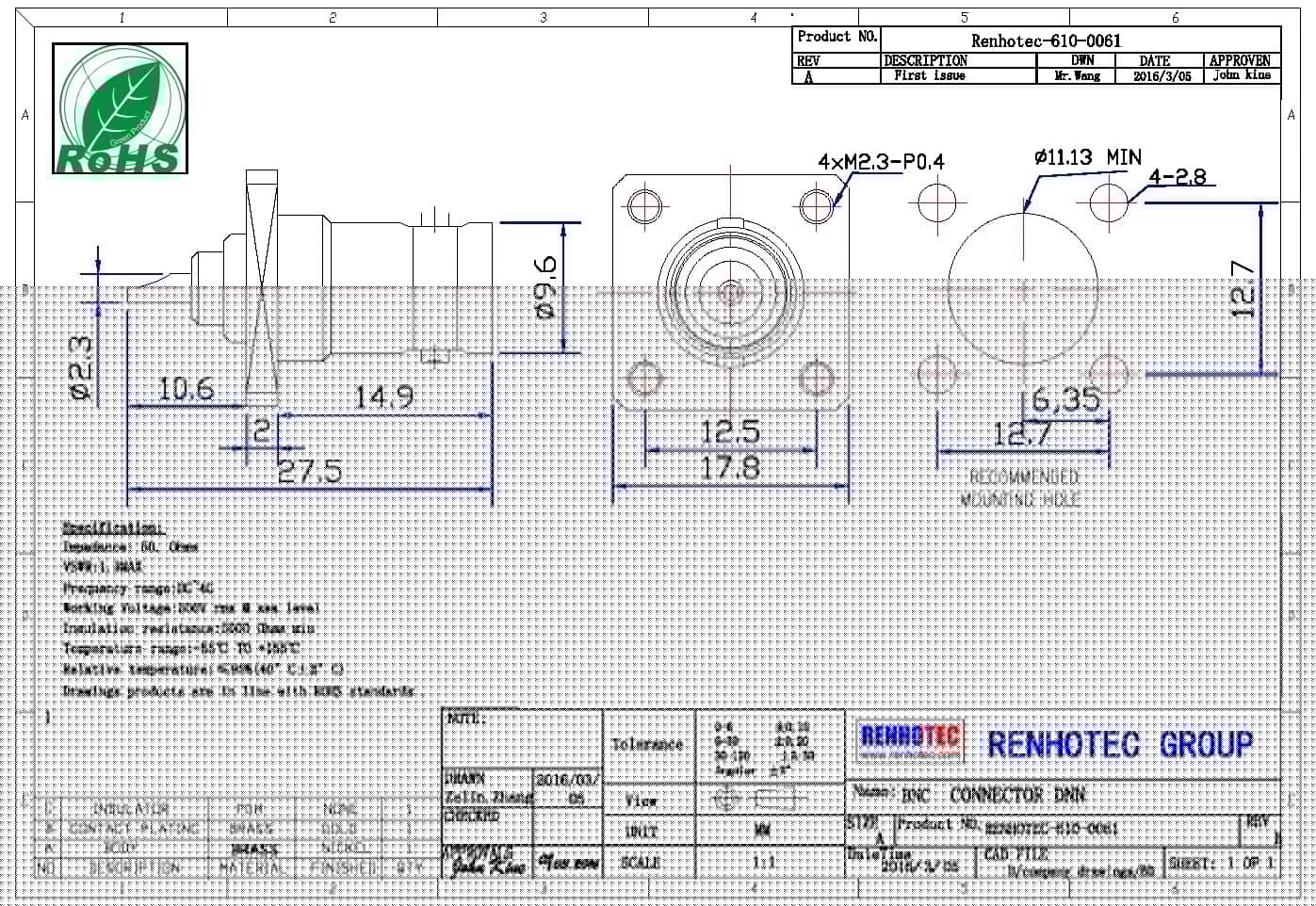 | 頻率范圍 | 50 ohm 為 0~4 GHz |