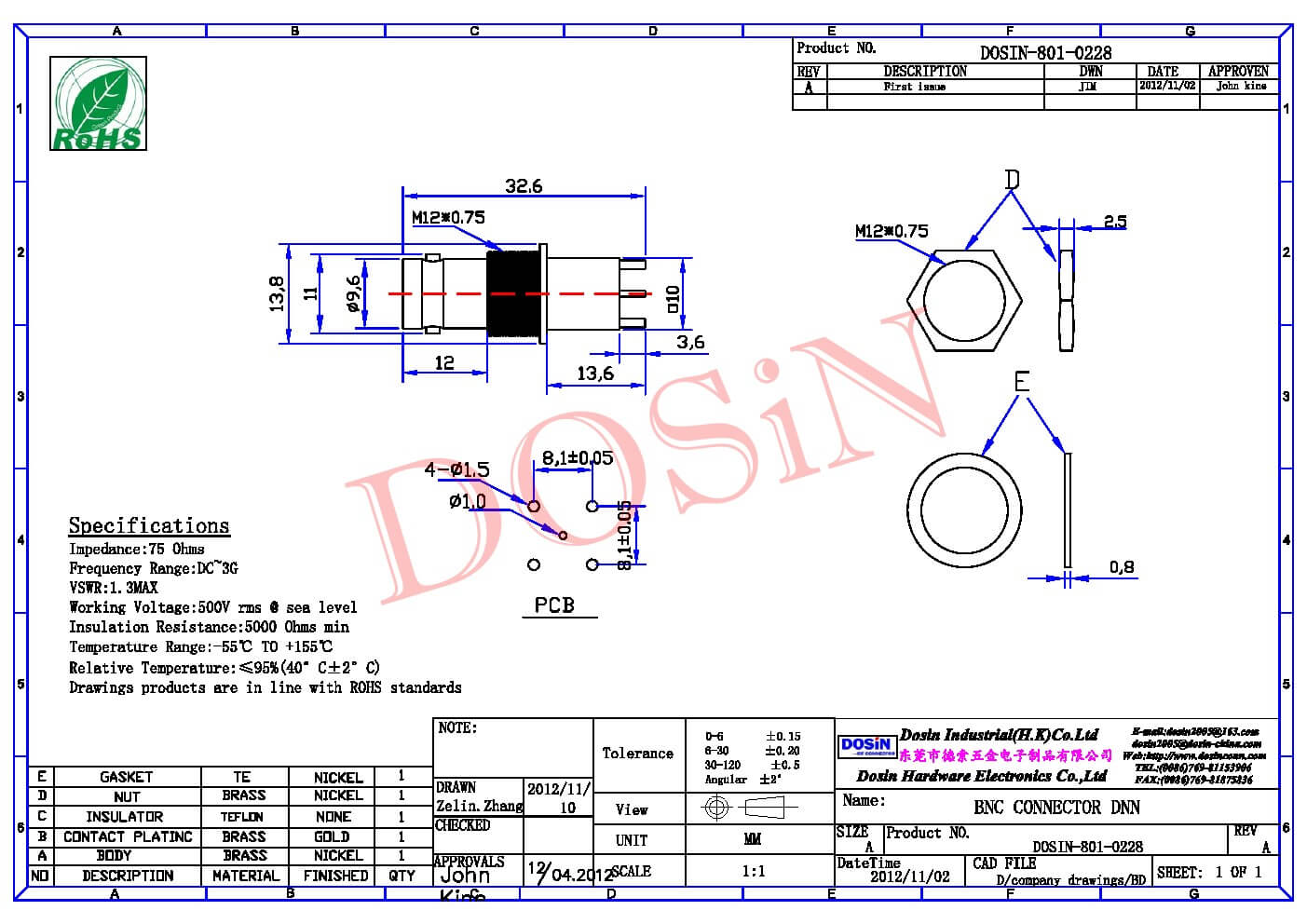| 阻抗 | 50 ohm |