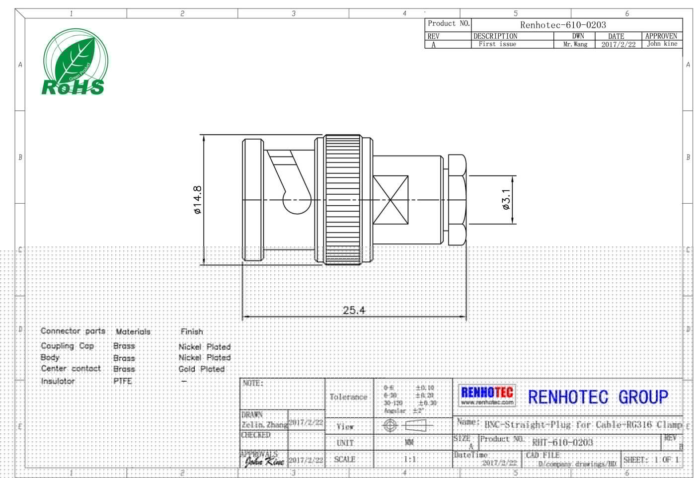bnc 螺紋連接直式鋅合金 公頭射頻同軸電纜連接器