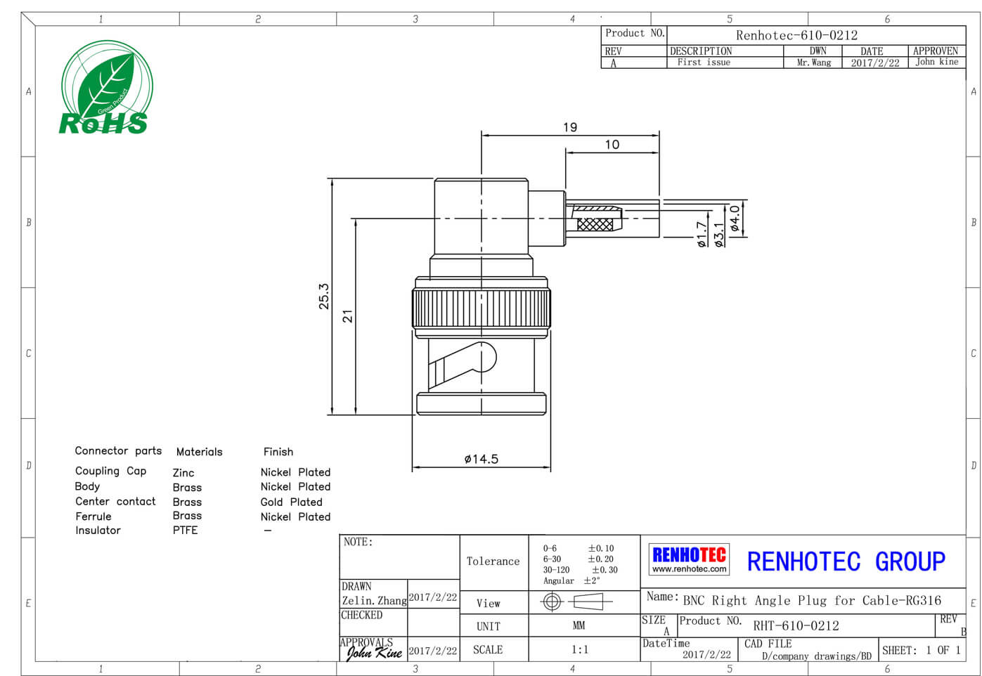 | 電壓駐波比 | 直式 ≦ 1.22/3GHz / 彎式≦ 1.30/3GHz |