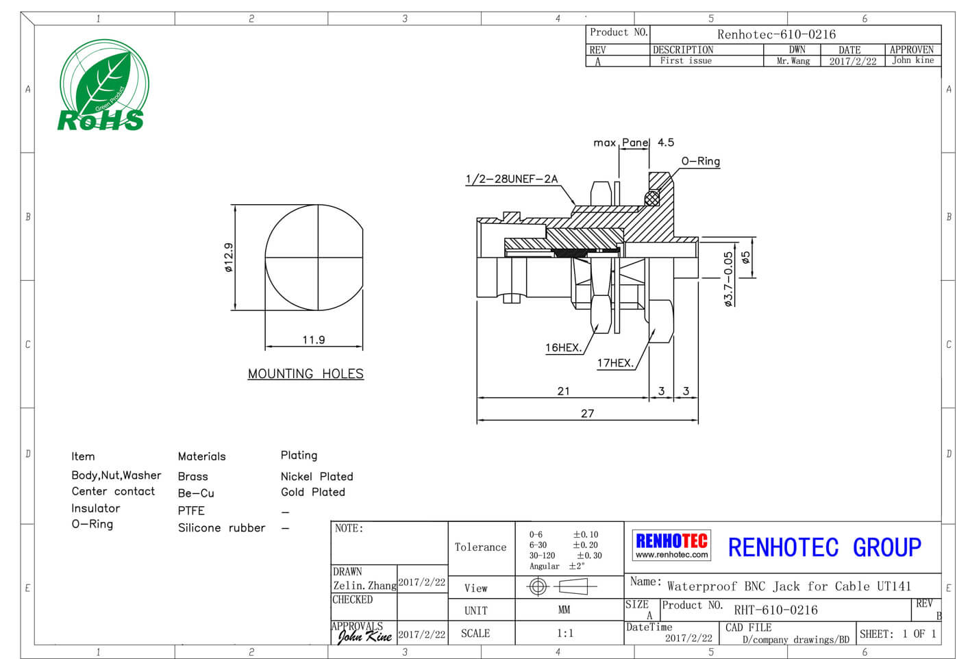 | 溫度范圍 | Teflon -55℃~+155℃ / POM -40℃~+60℃ |