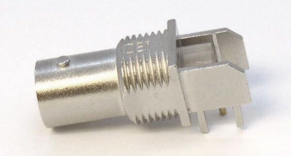 BNC連接器鍍鎳彎式母頭穿孔式接PCB板厚度8mm