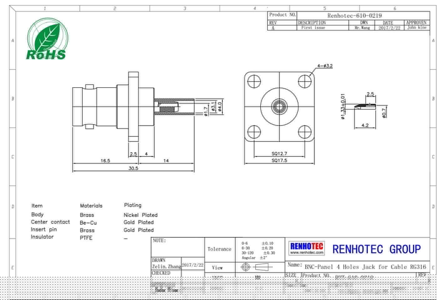 | 中心接觸電阻 | ≦ 1.5 mΩ (Milliohms max.) |